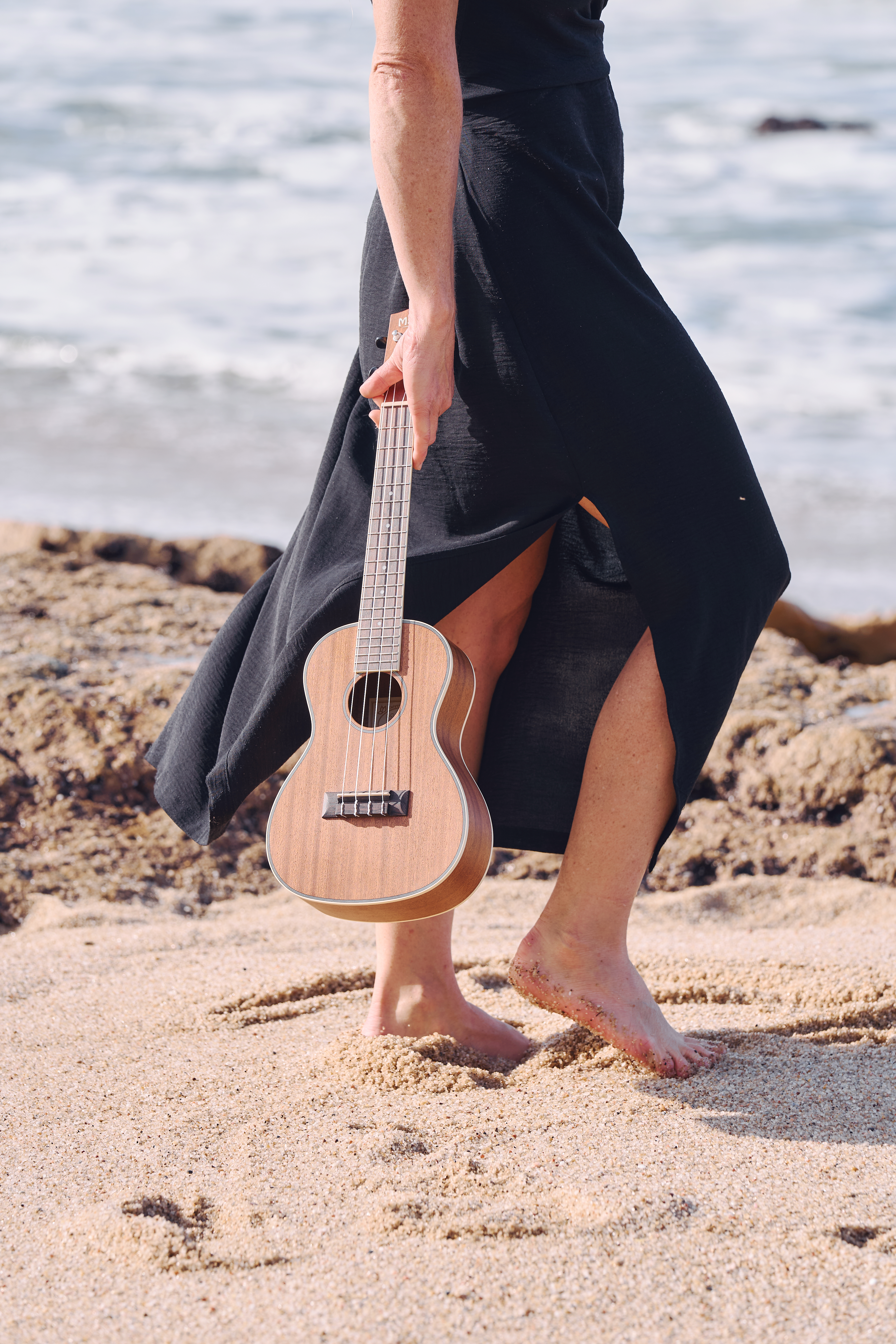 Singer songwriter Marie Kammah plays ukelele and guitar and writes music under the name marieinthewilds.